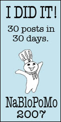 Congratulations on NaBloPoMo. Thanks for letting me know about it. I had fun doing it too. It really wasn't as hard as I thought it would be!
